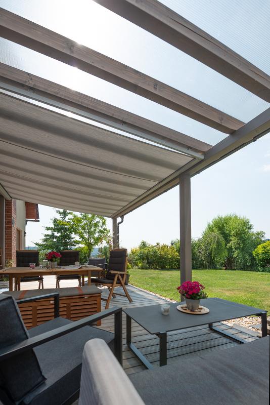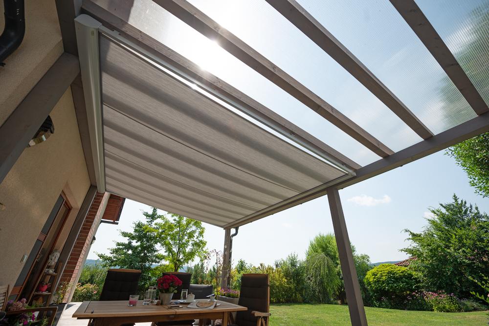 Žhne vám slunce na prosklenou střechu? Zastiňte ji! Rovněž tak hotové pergoly a užívejte si pohodlí.